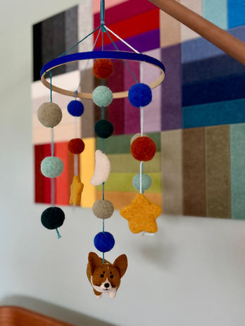 "I ordered a customized corgi baby mobile from Miranda, who pulled out all the stops to create a beautiful likeness of the new parents' corgi, and to deliver it on time to the baby shower. The mobile, according to one of the guests, was 'the hit of the party.' And I have photos of the new mother-to-be crying as she holds it up. I so appreciate Miranda's professionalism and aesthetic: a rare combination, and I wish for all of you to have a special mobile in your lives! " - Colleen